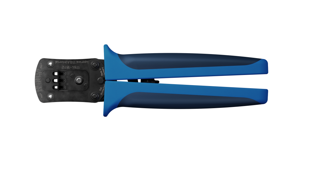 Crimping tool for AMP Superseal 1.5 mm connectors and MINI MIC SRS family. Ideal for automotive, commercial vehicles, and electronic control systems where secure, watertight connections are required.